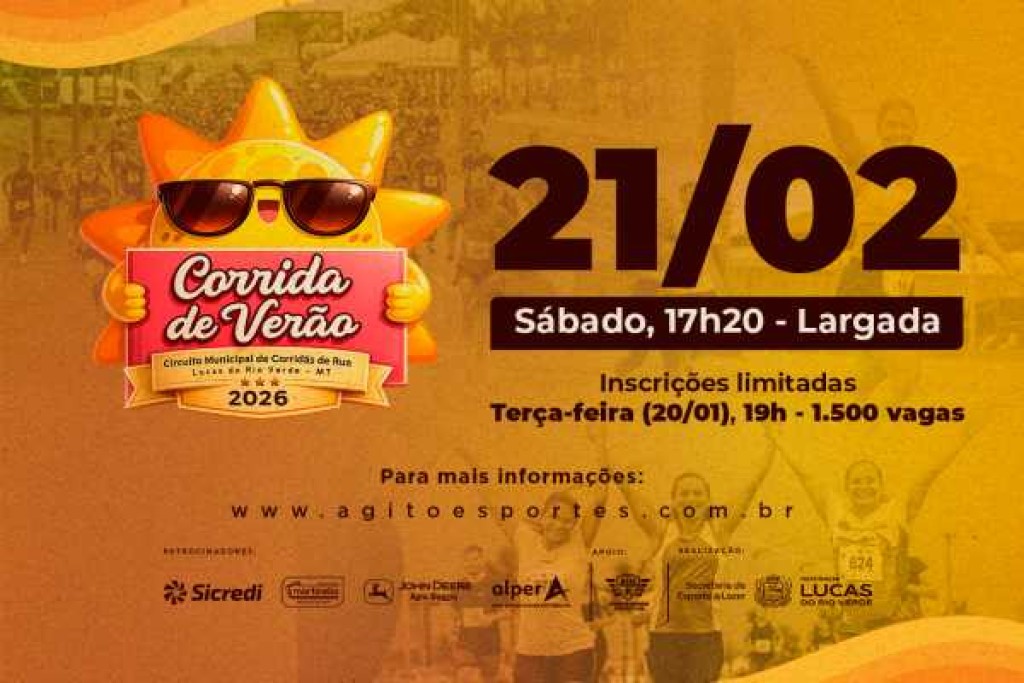 É hora de preparar o tênis: a Corrida de Verão, primeira corrida de rua do ano em Lucas, será realizada neste sábado (21), a partir das 17h20. O percurso será de 5 km, com trajeto pelas ruas do bairro Parque das Emas.