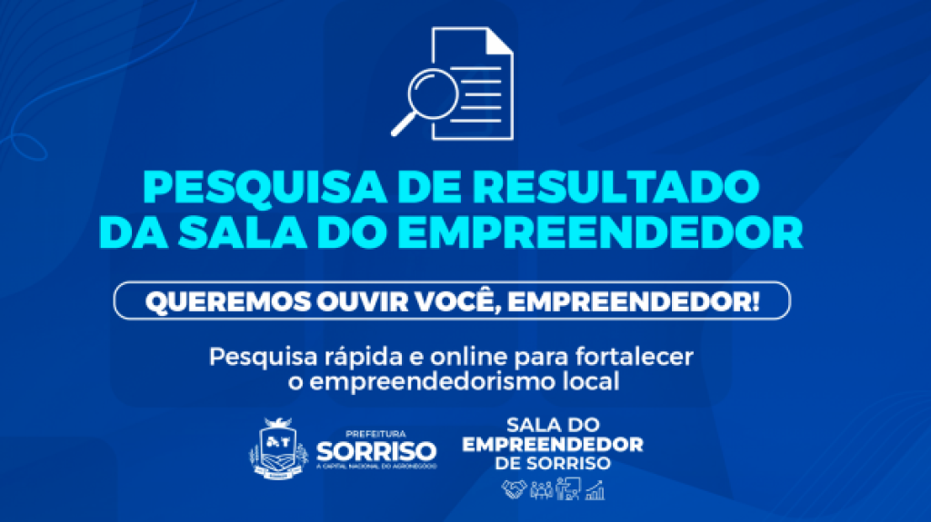 A Sala do Empreendedor de Sorriso lança hoje, segunda-feira, 26 de janeiro, uma pesquisa de satisfação com o objetivo de medir o grau de satisfação dos usuários que utilizam os serviços ofertados pela sala. A iniciativa busca coletar feedbacks que irão nortear a elaboração de ações e melhorias nos atendimentos, capacitações e serviços oferecidos tanto pela Sala quanto pela Secretaria Municipal de Desenvolvimento Econômico e Turismo (SEMDT).