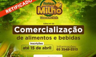 A Prefeitura de Lucas do Rio Verde, por meio da Secretaria de Cultura e Turismo, divulgou a Retificação nº 01 do Edital de Seleção nº 003/2026,...