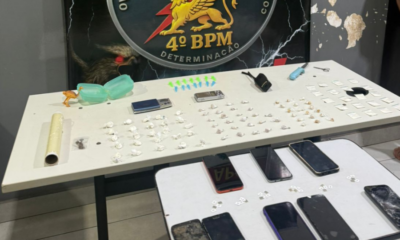 Policiais Militares do 4º Batalhão prenderam uma mulher, de 29 anos, e três homens, com idades entre 18 e 30 anos, pelos crimes de tráfico ilícito...