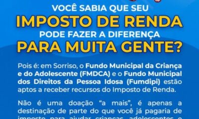 Em Sorriso, o CMCDA e o Comdipi podem receber doações oriundas do Imposto de Renda A declaração do Imposto de Renda de 2026, ano-base 2025, começa...