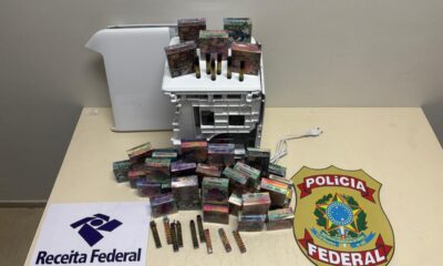 Polícia Federal19 segundos atrás PF, PM e Receita Federal apreendem cigarros contrabandeados e mercadorias descaminhadas em Foz do Iguaçu Foz do Iguaçu/PR. Policiais federais, policiais militares...