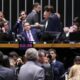 Hugo Motta (C) anunciou o adiamento durante a sessão do Plenário da Câmara O presidente da Câmara dos Deputados, Hugo Motta (Republicanos-PB), anunciou o adiamento da...